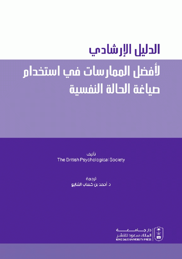 الدليل الإرشادي لأفضل الممارسات في استخدام صياغة الحالة النفسية / تأليف جمعية علم النفس البريطانية ؛ ترجمة أحمد بن كساب الشايع.