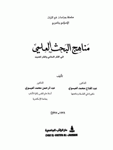 مناهج البحث العلمي في الفكر الإسلامي والفكر الحديث / تأليف الدكتور عبد الفتاح محمد العيسوي، الدكتور عبد الرحمن محمد العيسوي.
